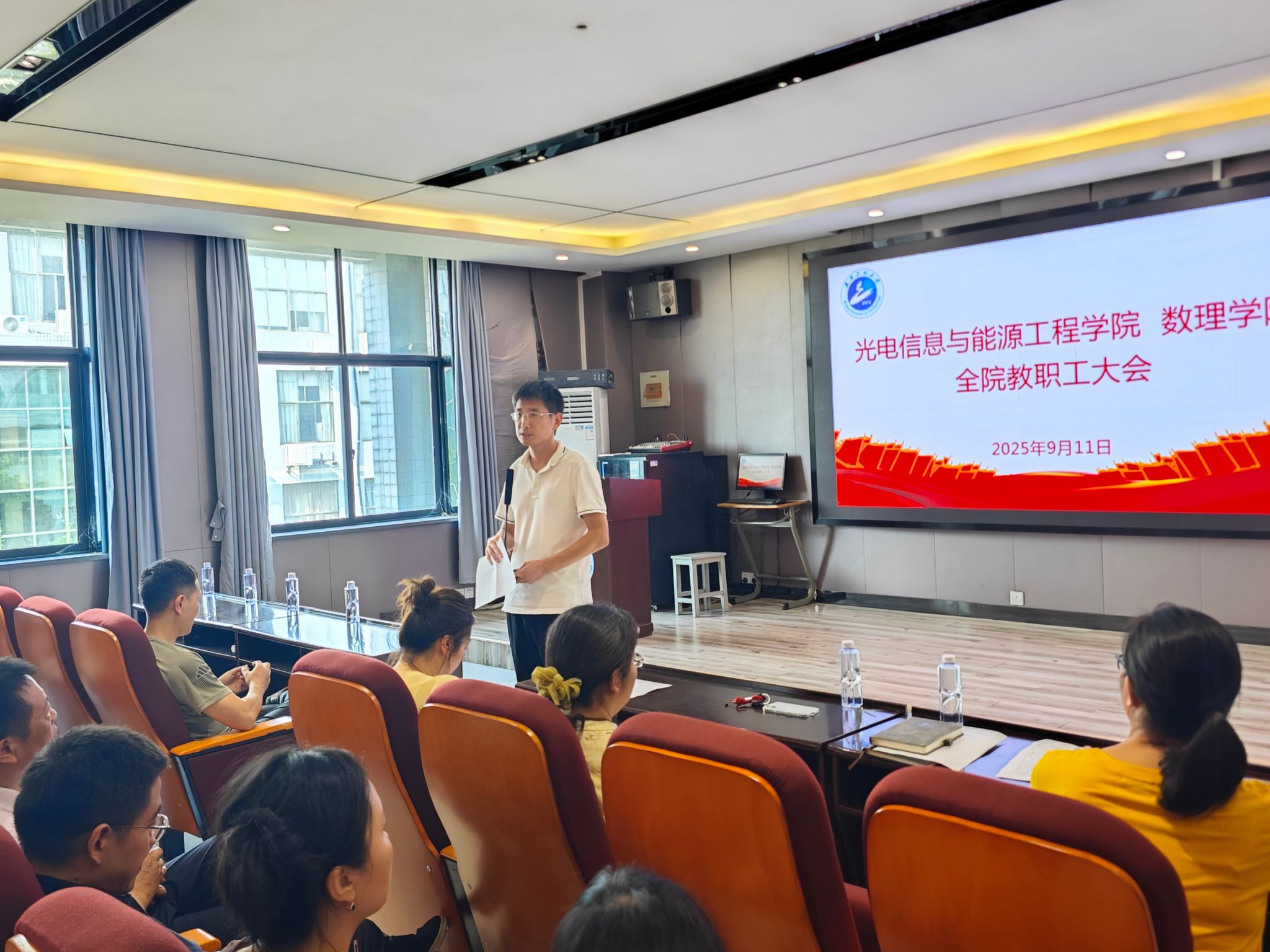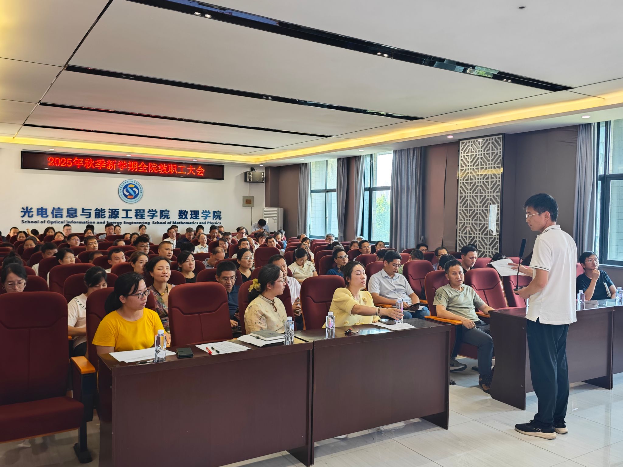本网讯(通讯员 段骞)2025年9月11日下午,JBO电竞在2实验楼401会议室召开了新学期全体教职工大会。学院领导班子及全体教职工参加会议。会议由院长陈相柏主持。